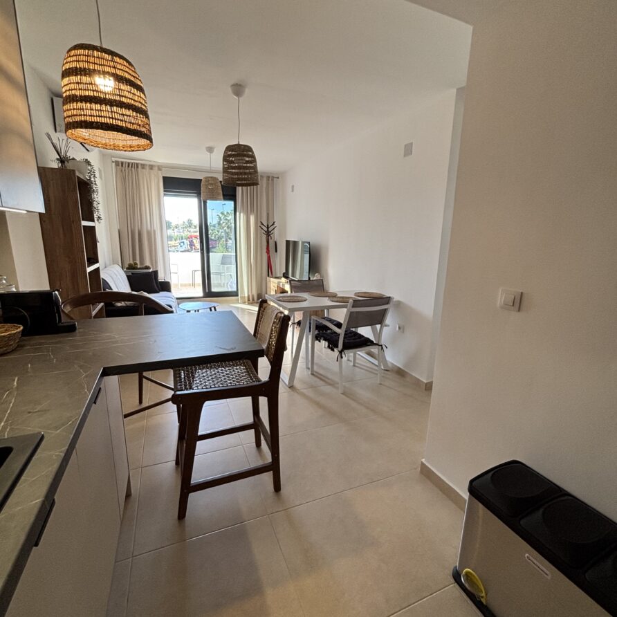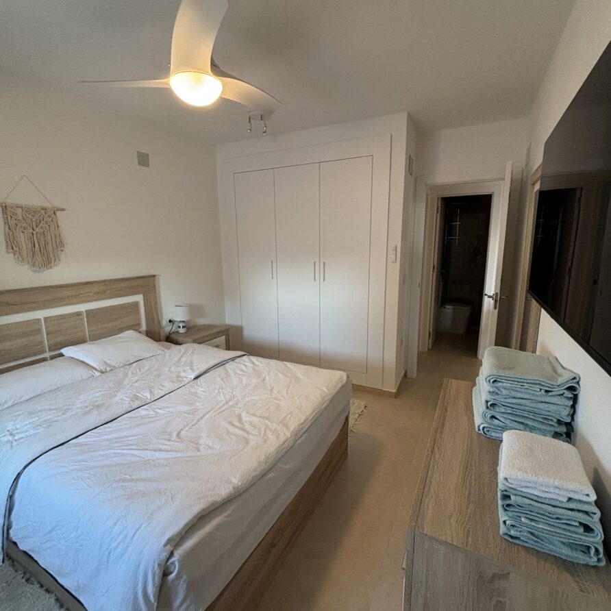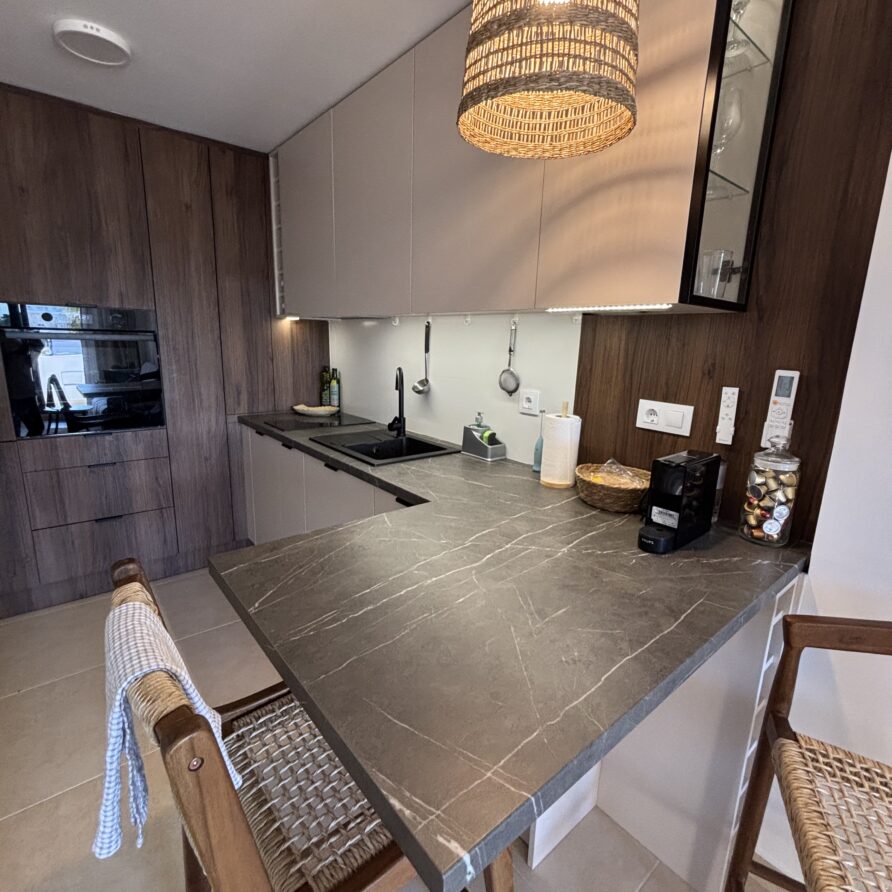 Stylowy apartament w Cumbre del Sol z prywatnym tarasem to idealne miejsce na wypoczynek na Costa Blanca. Na gości czekają dwie komfortowe sypialnie, w pełni wyposażona kuchnia oraz przytulny salon ze smart TV i szybkim Wi-Fi. W sezonie można korzystać z nadzorowanego basenu, kortów tenisowych i padla oraz licznych tras spacerowych i rowerowych. Położenie apartamentu zapewnia bliskość malowniczych plaż, pól golfowych i najpiękniejszych widoków na wybrzeże.